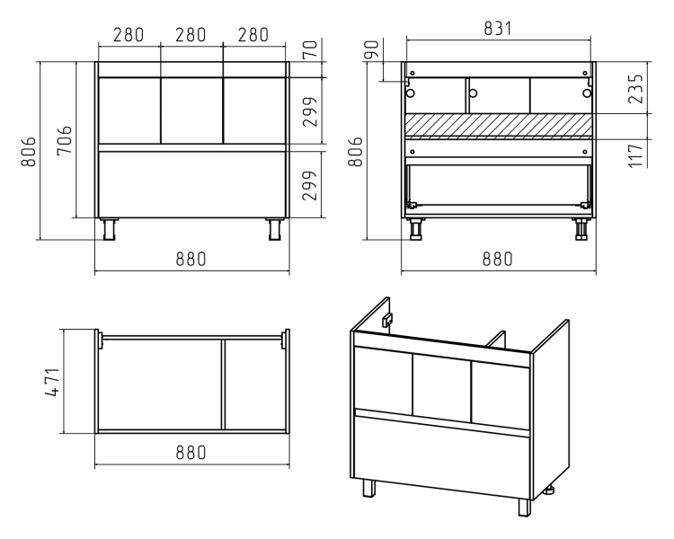 - Тип:тумба под раковину
