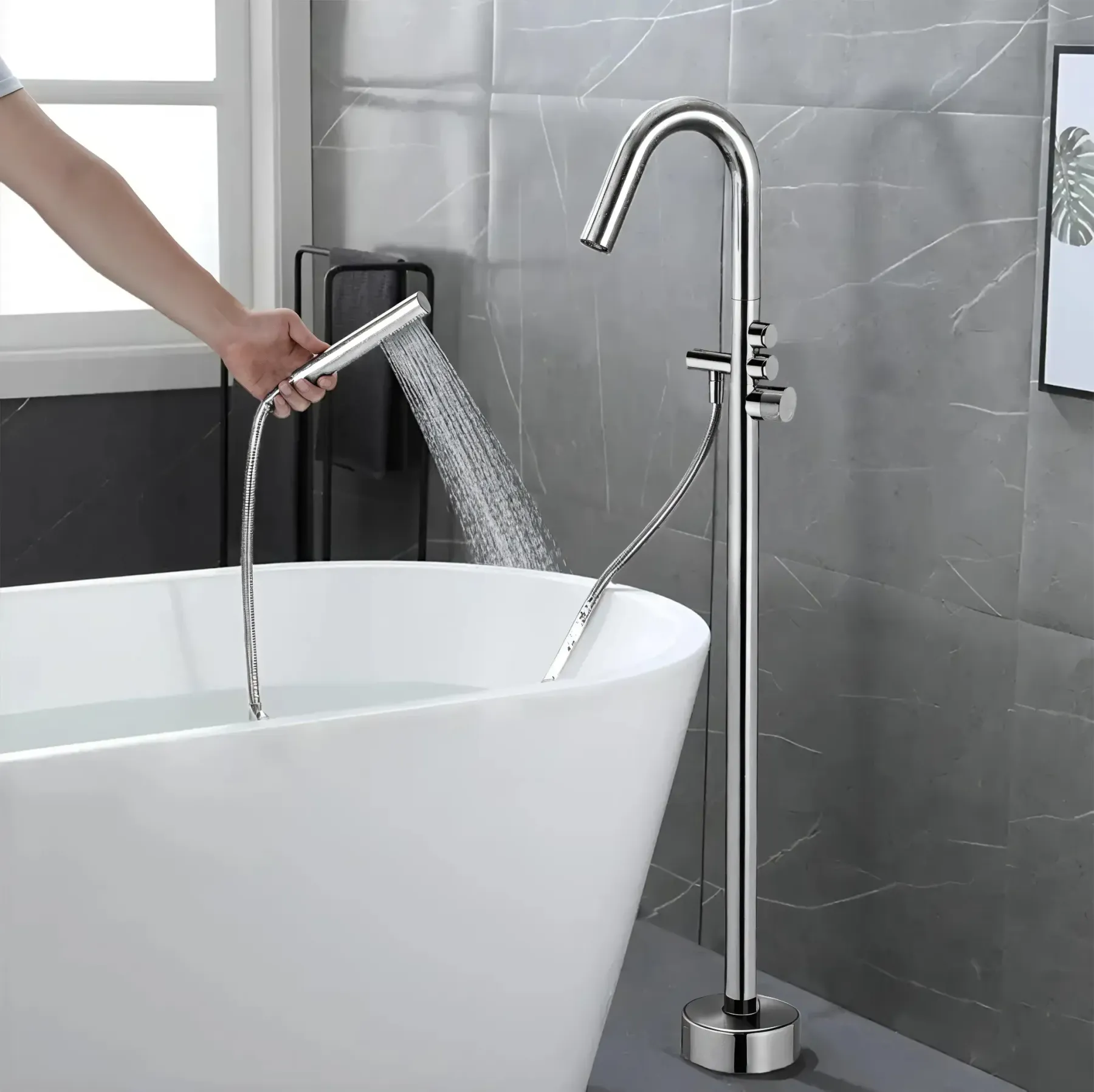 Отдельностоящие ванны - модный тренд в дизайне ванных комнат. Такие ванные обладают особым шармом и изысканностью, становятся концептуальным и дизайнерским центром всего интерьера.Отдельностоящая ванна может вписаться в любые дизайн-проекты и в этом случае, с точки зрения стилистики, будет доминировать смеситель. Лучшее решение для отдельностоящей ванны – напольный смеситель, а вместе они, пожалуй, сама красивая пара любой ванной комнаты. Напольные смесители подчеркивают оригинальность дизайнерской задумки и статус хозяина дома.Напольные смесители — представляют собой стоящие автономно стационарные устройства без деталей крепления к ванне или стене. Разместить смеситель можно с любой стороны ванны или раковины. Здесь всё зависит от пожеланий заказчика и специфики санузла. Устройство монтируется прямо в пол, потому прокладка трубопровода должна производиться еще на этапе ремонтных работ, до укладки покрытия пола. Дизайнерские напольные смесители бренда BOCH MANN представлены в минималистичном, авангардном, ультрасовременном, классическом и ретро-исполнении. Так как материал изготовления сантехнических изделий имеет важное значение, в производстве напольных смесителей BOCH MANN используются только высокачественные латунь и нержавеющая сталь. Эти металлы отличаются наибольшей практичностью и надежностью, так как устойчивы к коррозии и перепадам температуры.Напольные смесители BOCH MANN – станут настоящим украшением вашей ванной комнаты. Смеситель SUV для отдельностоящей ванны BOCH MANN BM10906Цвет: хромКорпус: нержавеющая стальУправление режимами: кнопочноеДушевая штанга и база: нержавеющая стальКартридж: керамический SCCДушевой шланг: 1,5 м. Внимание! Производитель оставляет за собой право вносить изменения в конструкцию и комплектацию моделей без предварительного уведомления!