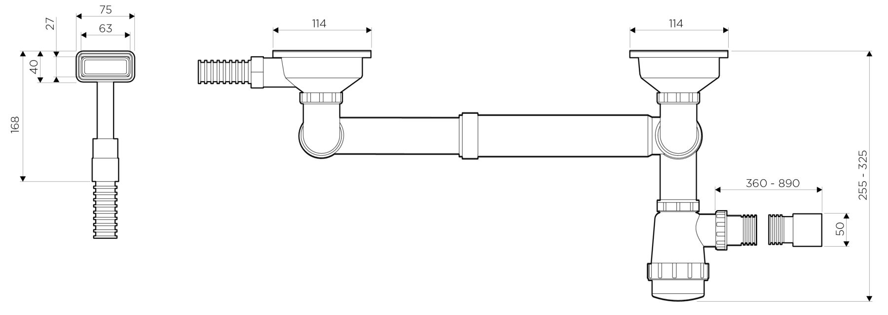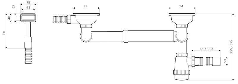 Арматура для полуторачашевых моек с прямоугольными переливами и декоративными решетками. Подходит для моек из серий MIZU, KATA и SAGAMI.