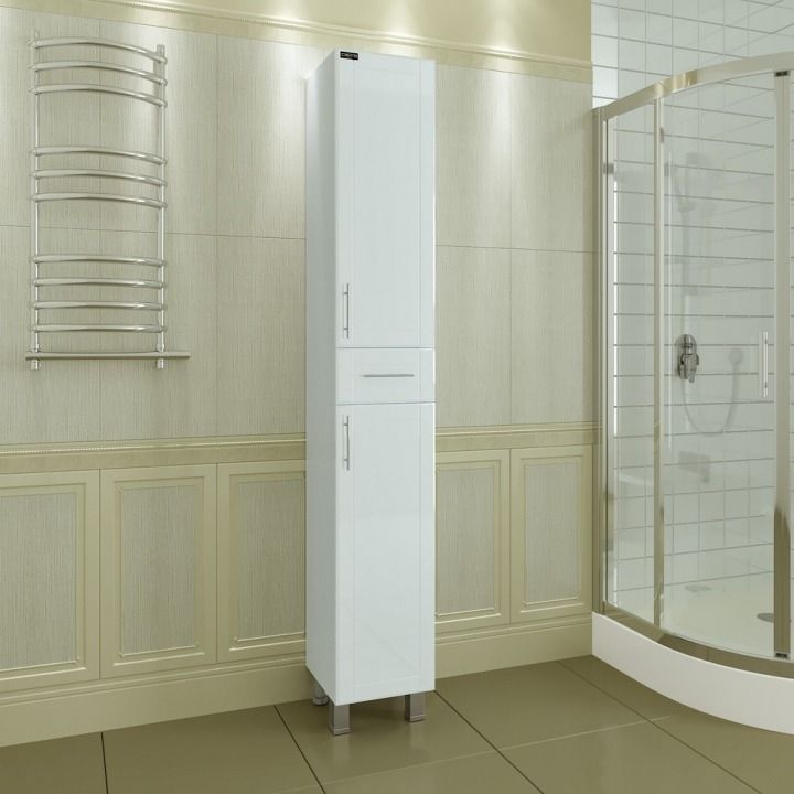 Шкаф-пенал СанТа отличное решение для создания комфортной атмосферы в любой ванной комнате. Напольный способ установки производится непосредственно на пол, при этом конструкция максимально устойчива при серьезных физических нагрузках. В производстве используют только качественные влагостойкие материалы (ВЛДСП), в составе которых полностью отсутствуют опасные вещества. Серия Вегас отличается превосходным дизайном с соблюдением всех существенных элементов современного стиля. Основным цветом, в котором выполнен шкаф-пенал СанТа является белый, безупречно впишется в любой дизайн проект. Шкаф-пенал предусматривает удобную и вместительную систему хранения, состоящую из дверей.Страной бренда СанТа является Россия, все товары производятся с выполнением соответствующих стандартов качества, что позволяет быть полностью уверенными в долговечности и надежности. Шкаф-пенал СанТа поможет сделать уютным любой интерьер и создать идеальную ванную комнату.