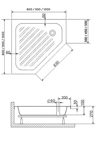 Поддон для душа RGW BT/CL-S 800х800х270 купить