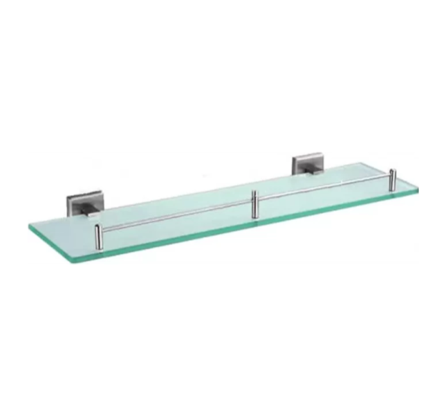 Полка стеклянная настенная в ванную Gappo G0707 с ограничителем, длина 60 см, цвет хром, держатели из латуни.