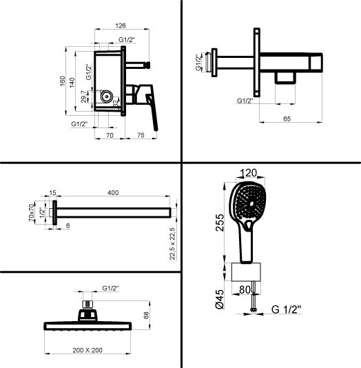 - Размер верхнего душа, мм 200