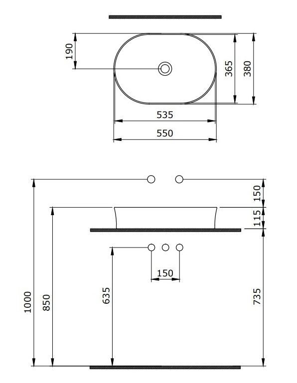 • Отверстия под смеситель: