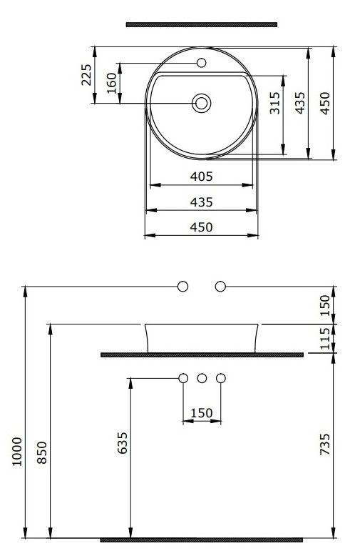- Отверстия под смеситель:1