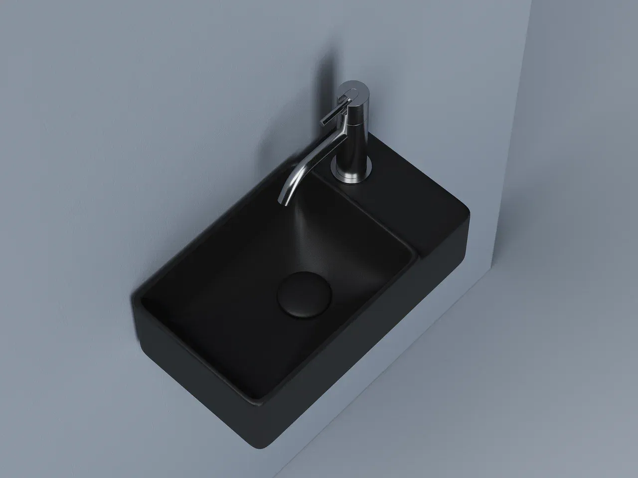 Умывальник подвесной прямоугольный (чаша слева, отверстие под смеситель справа) цвет черный матовый Element 395*220*125мм