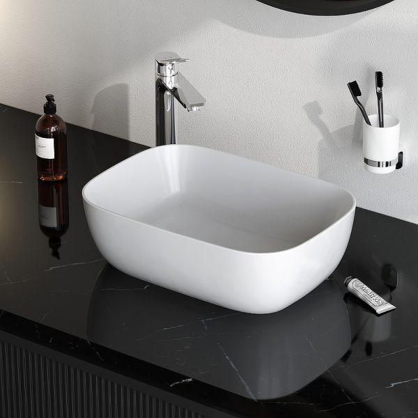 Универсальность — отсутствие отверстия под смеситель позволяет выбрать любую конфигурацию монтажа (настенный или настольный смеситель).