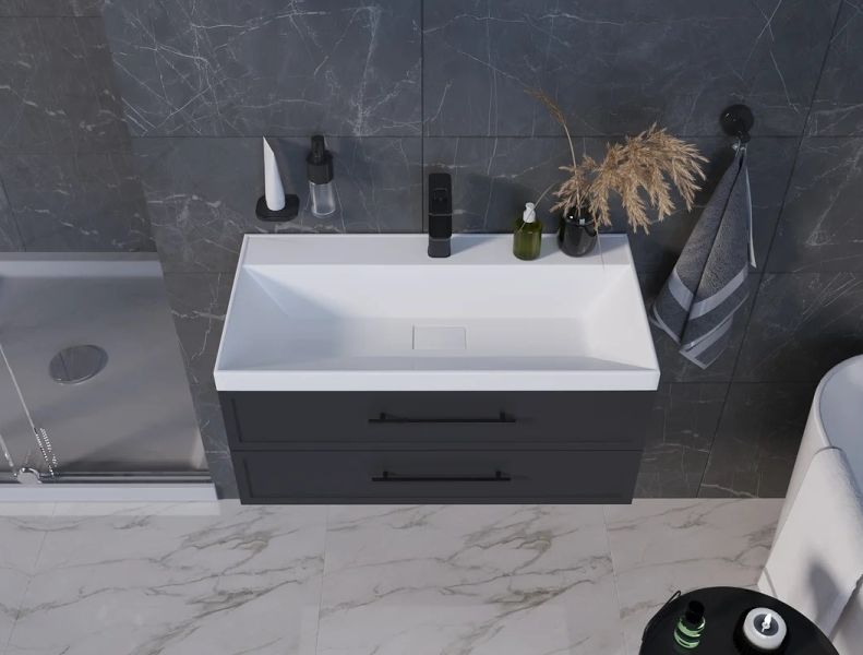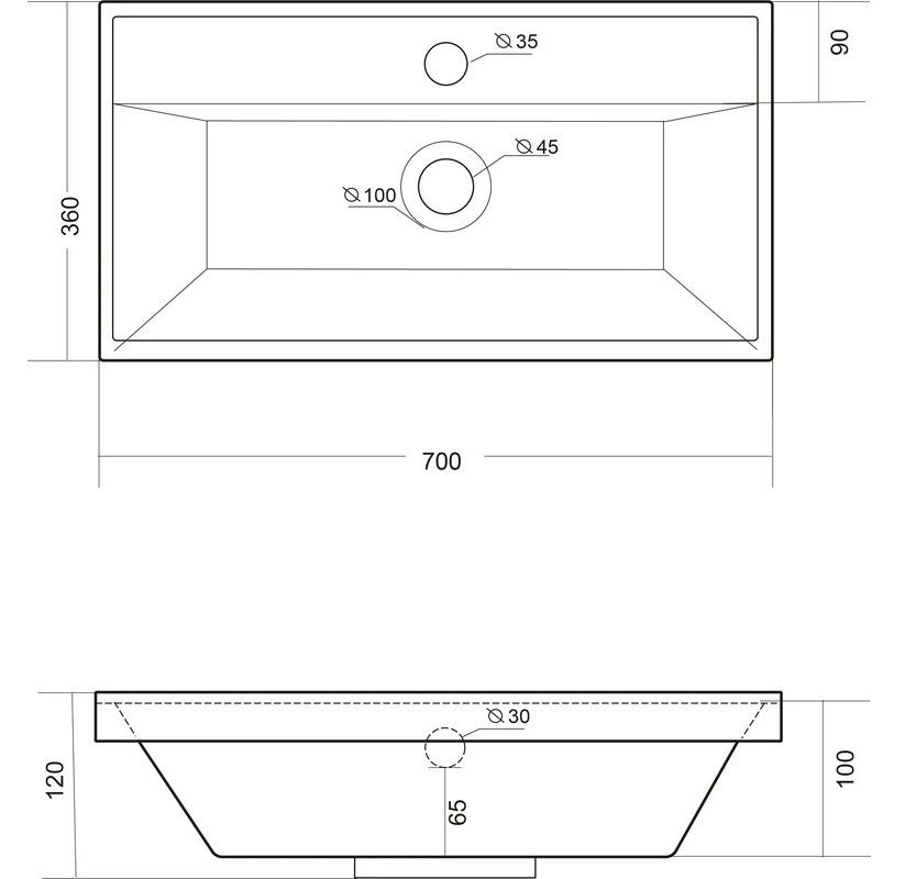 Раковина встраивается на мебель, в столешницу и на подстолье. Верхний слой представляет собой декоративно-защитное покрытие - импортный сантехнический гелькоут. Донный клапан отсутствует. В комплектацию входит декоративная накладка на слив.