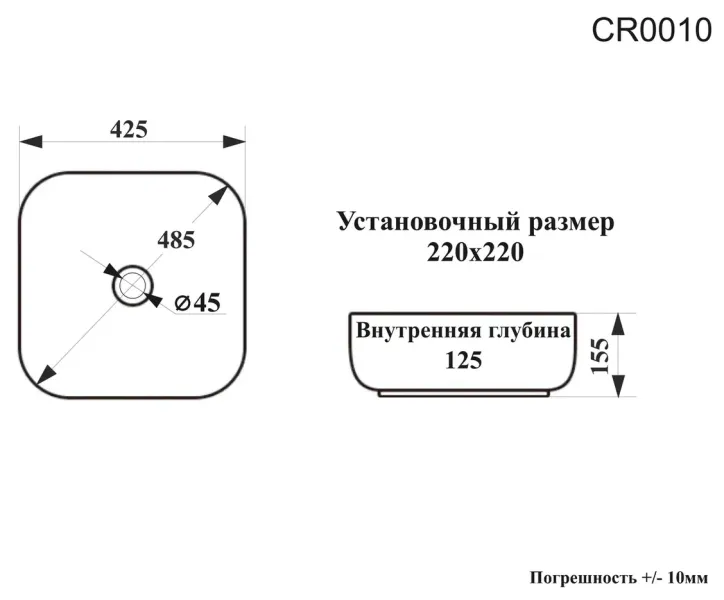 Раковина накладная Ceruttispa CR0010 43см белый купить