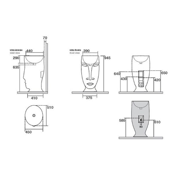 Раковина напольная Kerasan Artwork Moloco, слив в стену, цвет bianco-argento серебро, 474086Раковина свободностоящая "MOLOCO", слив в стену: