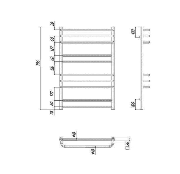 Ширина, мм: 530Высота, мм: 800Материал: СтальЦвет: ХромФорма: ЛесенкаТип: Водяной