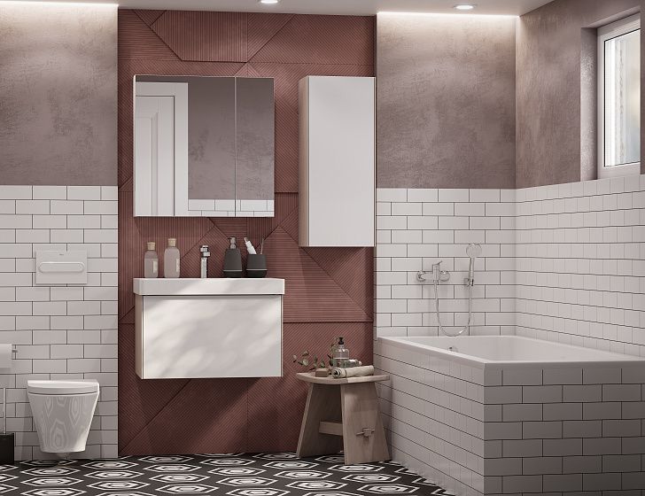 Дополнительное место для хранения можно получить благодаря подвесным модулям, выполненным в дизайне коллекции.
