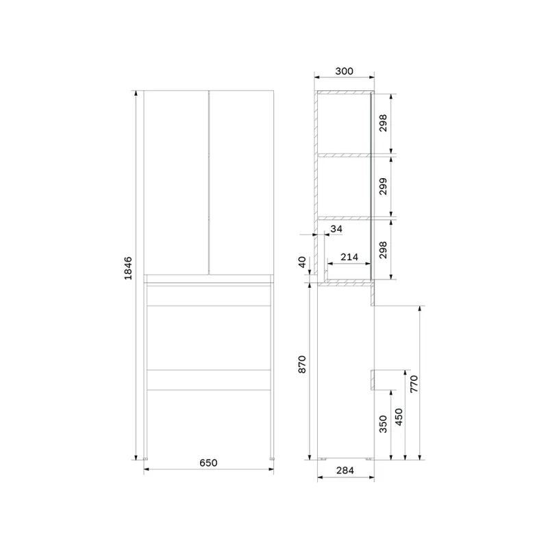 • Возможность установки над стиральной машиной: