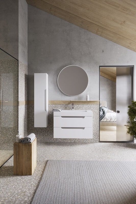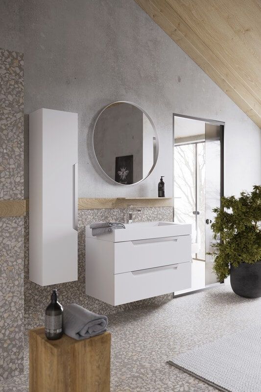 Подвесной универсальный левый/правый пенал с одной дверью в белом матовом цвете