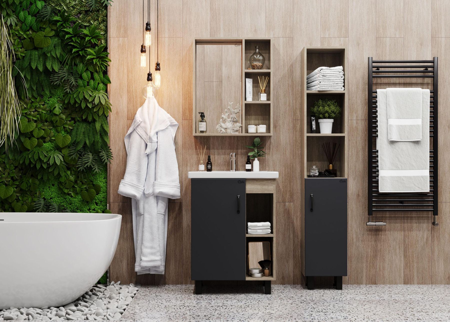 Зеркальный шкаф Onika ТИМБЕР 60 отражает современные тенденции в дизайне мебели для ванных комнат: минимализм с простыми и понятными формами, цвета дуба с роскошной текстурой, отсутствие лишних деталей.