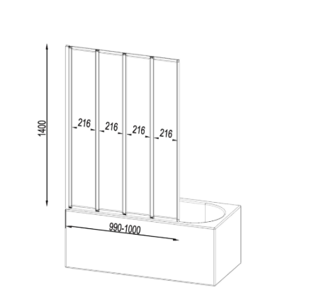 Душевая штора обладает уникальной конструкцией, позволяющая регулировать положение и размер.Складная душевая шторка на борт ванны, состоит из четырёх частей.