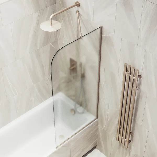 Монтаж осуществляется с помощью алюминиевого профиля, что обеспечивает надежность крепления и безопасность использования стеклянной перегородки для ванной. Также, шторка оснащена специальным уплотнителем, который предотвращает попадание воды на пол ванной комнаты. Закаленное стекло, цвет Сатин, толщина 8 мм 1400х900 мм - 1 шт.
