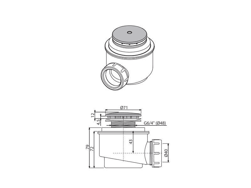 - Для душевых поддонов со сливным отверстием Ø52 мм