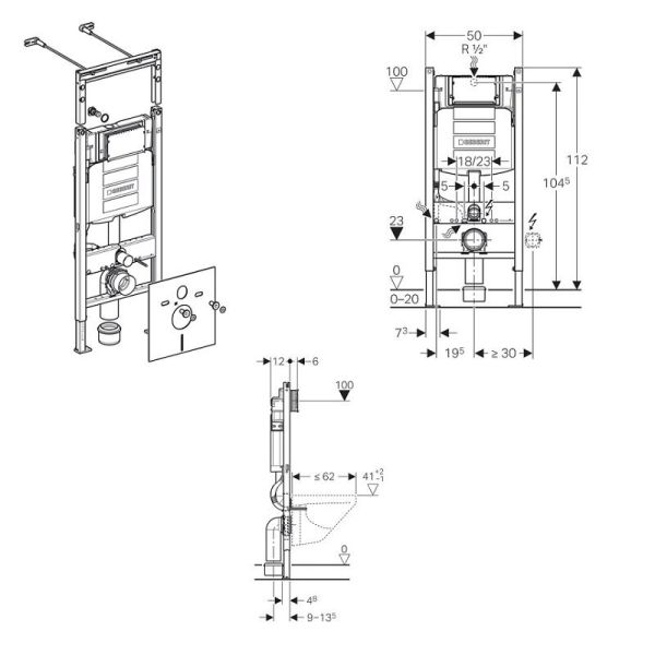 Система инсталляции Geberit Duofix Sigma Plattenbau 111.362.00.5 используется для подвесных унитазов. Рама устанавливается перед капитальной стеной или гипсокартонной перегородкой и дополнительно закрепляется в пол. Бесступенчатая регулировка ножек (0–20 см) позволяет расположить унитаз на оптимальной высоте. Бачок скрытого монтажа герметизирован от конденсата, что предупреждает появление плесени и грибка на поверхности изделия. Управление системой смыва механическое. Для данной модели подойдет любая из трех кнопок: двойного смыва (режим эконом), одинарного (полный смыв) и с функцией старт-стоп.Крепление для фанового отвода монтируется без применения инструментов, регулируется по глубине в 8 положениях, диапазон регулировки 4,5 см