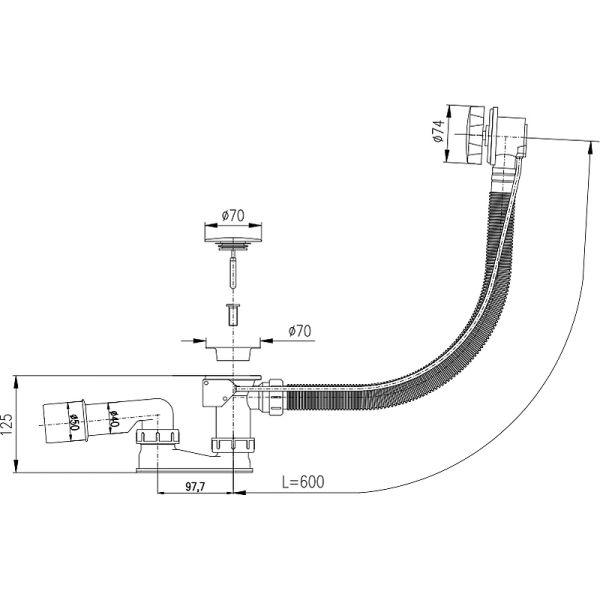 Слив-перелив Rav Slezak MD0588PCMAT полуавтомат Черный матовыйMD0588PCMAT Сифон для ванны металл/пластик 600 мм, ЧЕРНЫЙ МАТОВЫЙ, сливной сифон ПЛАСТИКОВЫЙ