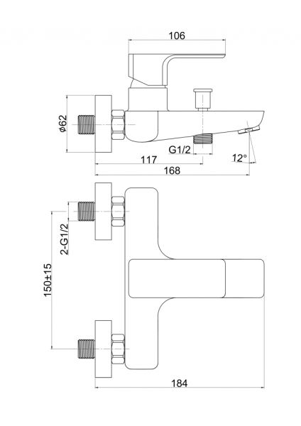 Смеситель Cersanit GEO 63040 для ванны и душа купить