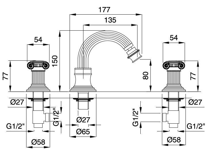 Смеситель для биде на 3 отверстия Cezares OLIMP-BBS2-02-M купить