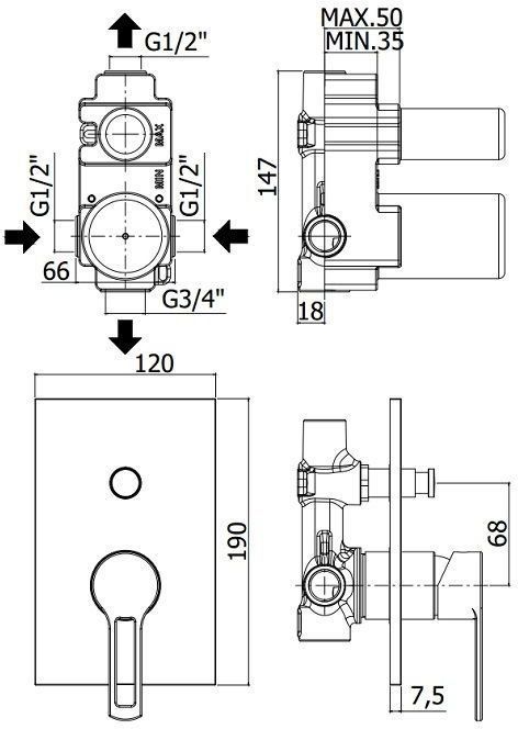 Смеситель встраиваемый для душа на 2 выхода с накладкой нерж сталь 120х190мм.девиатор-кнопка, Черный матовыйСмеситель для душа Paffoni Ringo RIN015NO/M (с внутренней частью) предназначен для душа. Своим сдержанным дизайном и цветом он внесет в интерьер помещения стильный акцент, подчеркнув его своеобразие. Он выполнен из надежного материала латунь/Нержавеющая сталь, который не подвержен коррозии, а потому прослужит верой и правдой. Изделие является отличным примером продуманной конструкции. Управление в смесителе предусмотрено однорычажное, что удобно для любителей такого типа смесителей. Высокую работоспособность и основательность смесителю гарантирует керамический картридж, отличительной чертой которого является продуманная конструкция - залог отменной работы в течение длительного времени. Не напрасно гарантия на смеситель – 5 лет, в течение которого производитель Paffoni заверяет в его бесперебойной работе. Форма излива в смесителе - нет, а тип - нет. При покупке учтите, что подводка у смесителя жесткая, что важно для его подключения.
