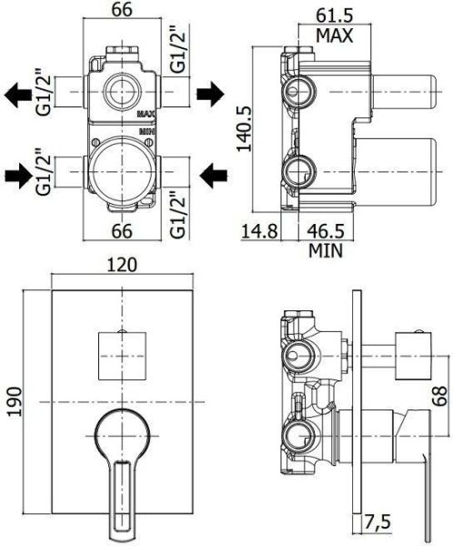 Смеситель встраиваемый для душа на 2 выхода с накладкой нерж сталь 120х190мм.девиатор-картридж, 2 положения+1 комбо, Черный матовыйСмеситель для душа Paffoni Ringo RIN018NO/M (с внутренней частью) предназначен для душа. Своим сдержанным дизайном и колористикой он внесет в интерьер помещения стильный акцент, подчеркнув его своеобразие. Он выполнен из надежного материала латунь/Нержавеющая сталь, который не окисляется, а потому прослужит верой и правдой. Изделие является удачным примером сочетания высокого качества и привлекательной цены. Управление в смесителе предусмотрено однорычажное, что порадует любителей такого типа смесителей. Высокую работоспособность и основательность смесителю гарантирует керамический картридж, главным преимуществом которого является проработанная конструкция - залог отменной работы в течение продолжительного времени. Не напрасно гарантия на смеситель – 5 лет, в течение которого производитель Paffoni заверяет в его бесперебойной работе. Форма излива в смесителе - нет, а тип - нет. При покупке учтите, что подводка у смесителя жесткая, что требуется знать для его подключения.