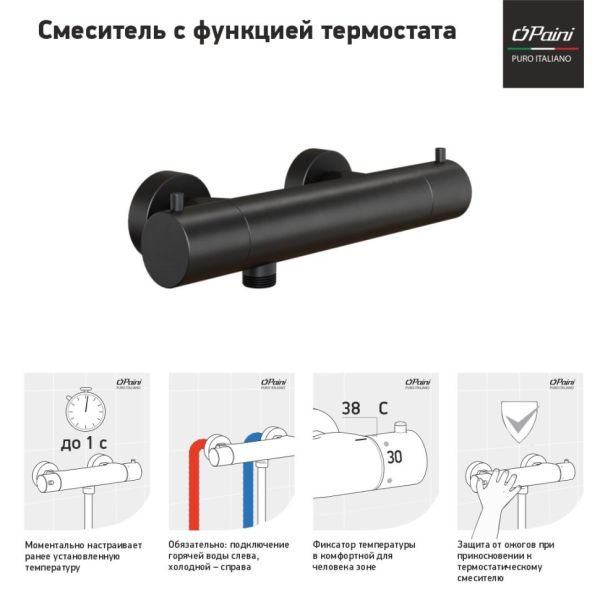Смеситель для душа Paini Cox 78PZ511TH с термостатом чёрный матовый купить