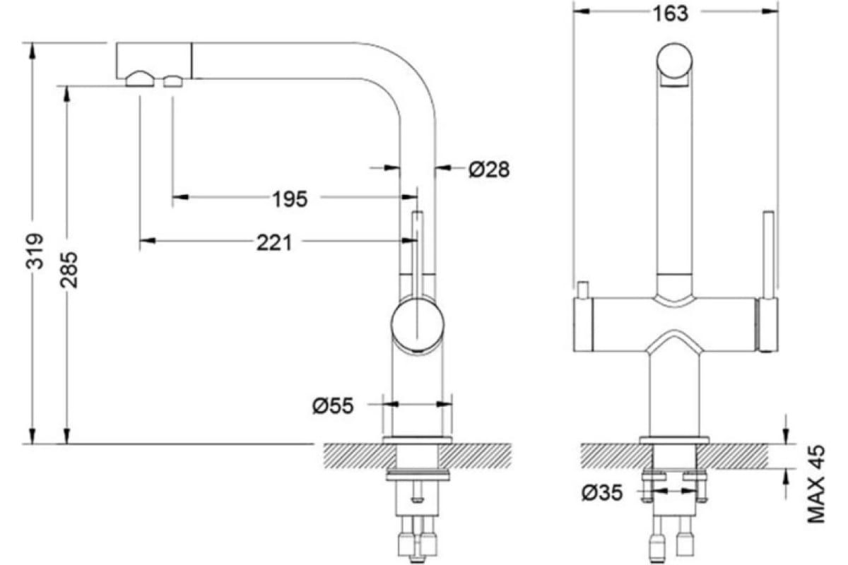 • Выдвижной излив: