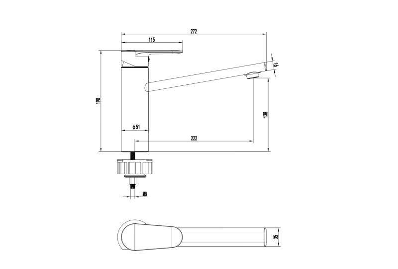 • оснащен длинным изливом, подходит для большинства кухонных моек