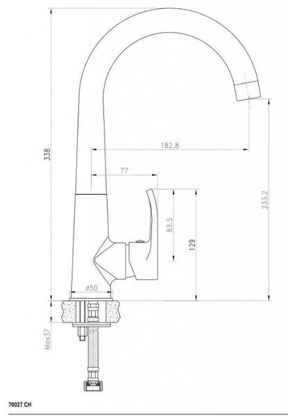 Смеситель для кухонной мойки, поворотный литой R образный излив, система монтажа EASY-FIX (облегченный монтаж) с дополнительным пластиковым опорным кольцом для монтажа на металлической мойке, гибкая подводка G3/8", картридж 40 мм с функцией HWTC (ограничение максимальной температуры горячей воды), с функцией CLICK (ограничение потока воды), металлическая рукоятка с индикаторами горячей/холодной воды, аэратор CASCADE M24 x1, соответствие EN817