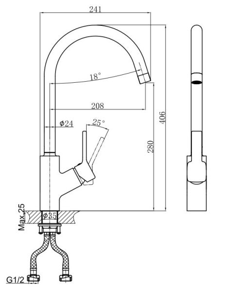 - Гибкий излив:нет