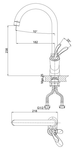 - Высота смесителя:34.7