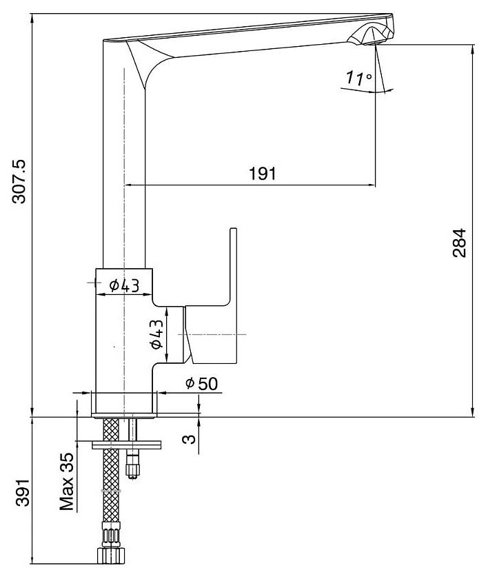 - Высота смесителя:30.7