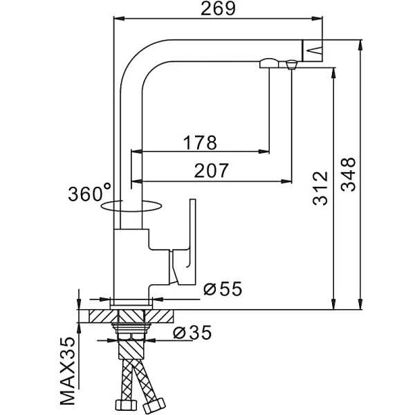 - Высота смесителя:34.8