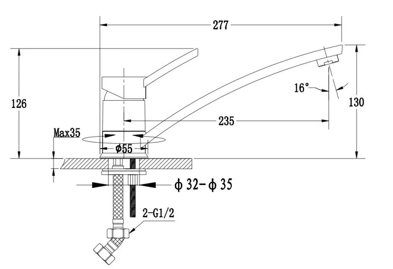 - Высота смесителя:13