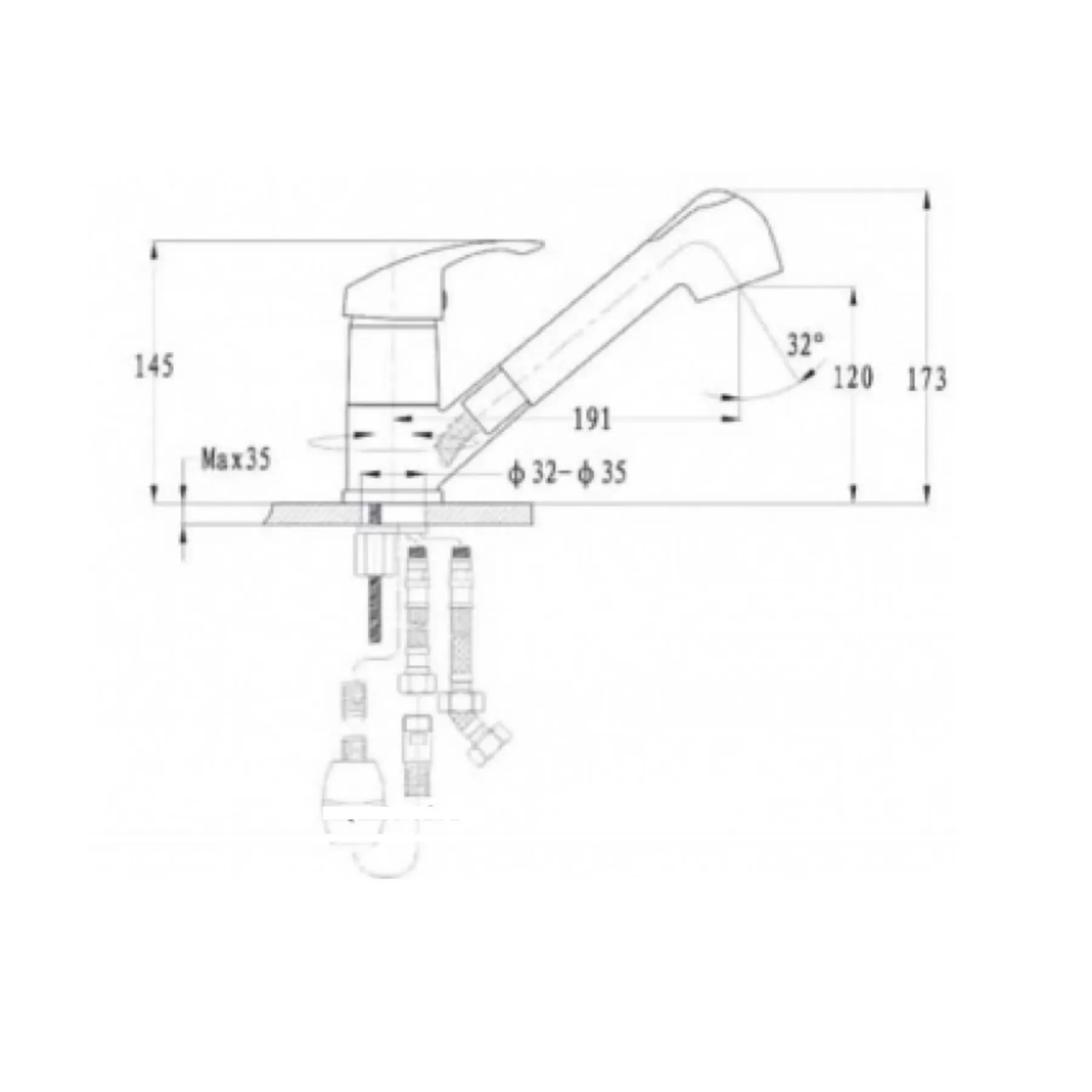 • Высота смесителя: