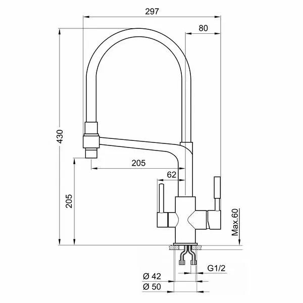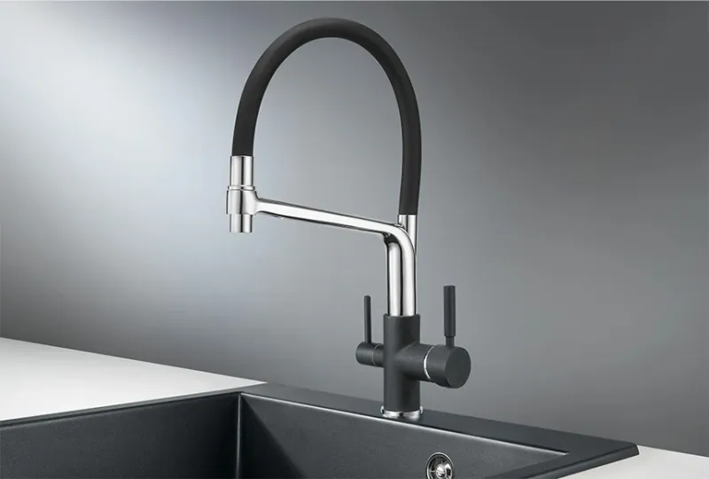 Смеситель для кухонной мойки Granula 0083 изготовлен из высококачественного материала. Латунный корпус обеспечивает длительный срок службы. При этом высокий излив с гибким шлангом позволяет мыть как мелкую, так и крупногабаритную посуду. Двухрычажная модель смесителя Granula 0083 выполнена с краном для питьевой воды. Фильтрованная вода подается по отдельной трубке и не смешивается с водопроводной водой.