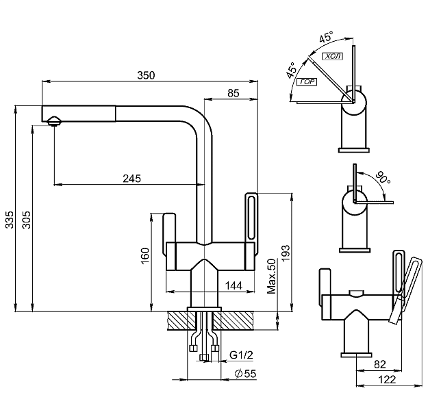 - Высота смесителя:33.5