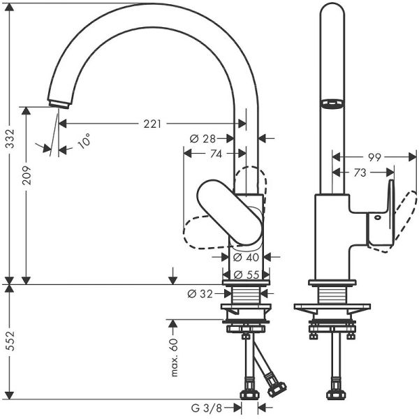 Стандарт подвода воды: 3/8.