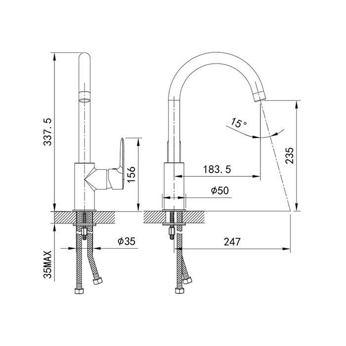 - Высота смесителя:33.8