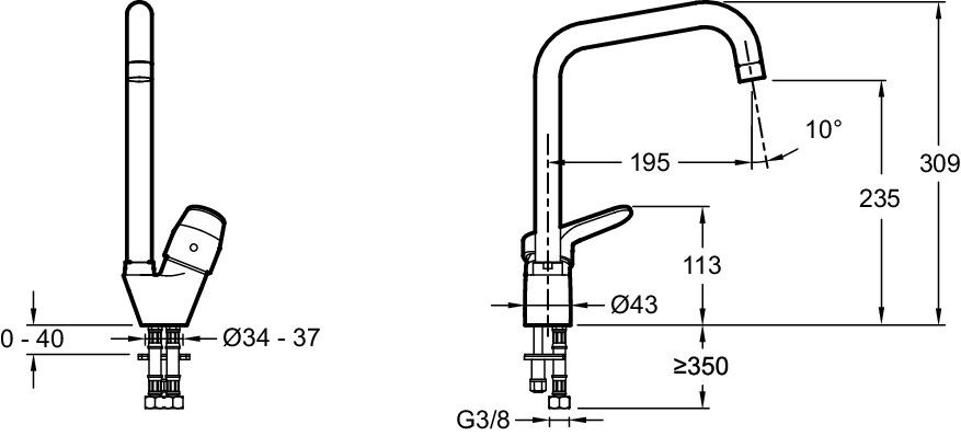 Гибкий излив:нет