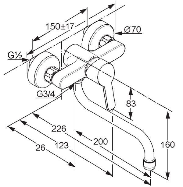 - настенный однорычажный смеситель для кухни DN 15