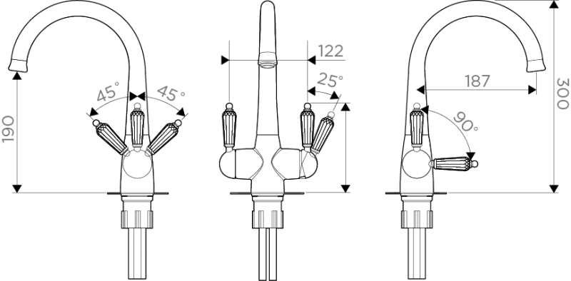 • Ручки смесителя украшены кристаллами Swarovski; • Цвет: 018.Античное Серебро • Технология PURE LIFE®: Подключение фильтра для очистки воды. Фильтрованная вода подается по отдельной трубке и не смешивается с водопроводной водой; • Высококачественная латунь сохранит воду чистой и здоровой; • Аэратор произведен из специального полимерного материала, благодаря чему на нем никогда не появится известкового налета и ржавчины; • Коробка внутри проложена поролоном, который обеспечит сохранность изделия при транспортировке; • Полный набор креплений, соединительных шлангов, подробная инструкция и гарантийный талон в комплекте