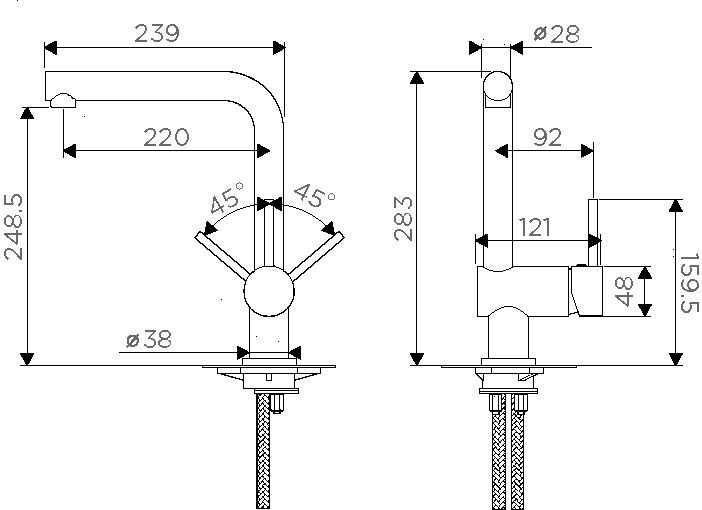 - Высота смесителя:28.3