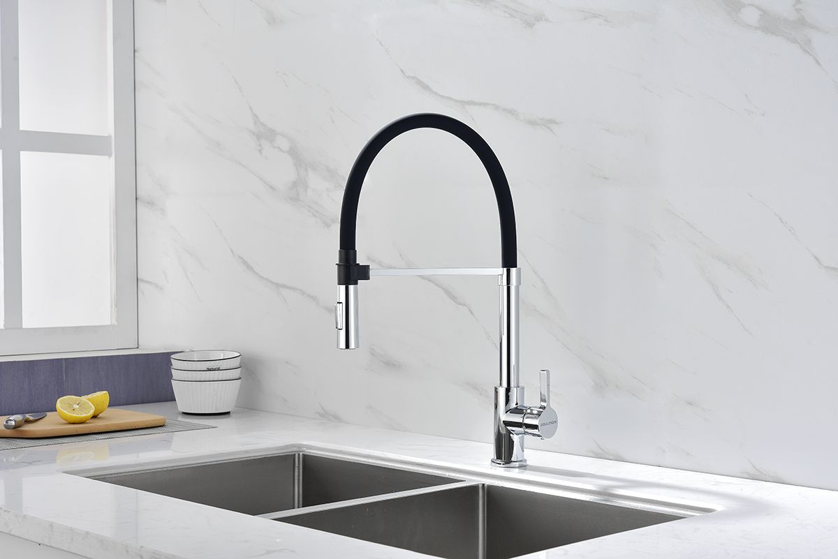 Смеситель для кухни, с гибким изливом, артикул Ha214021-CRИзготовлен из высококачественной латуни, которая отвечает высочайшим европейским стандартам качества, не содержит свинца, не разрушается со временем и безопасна для здоровья.