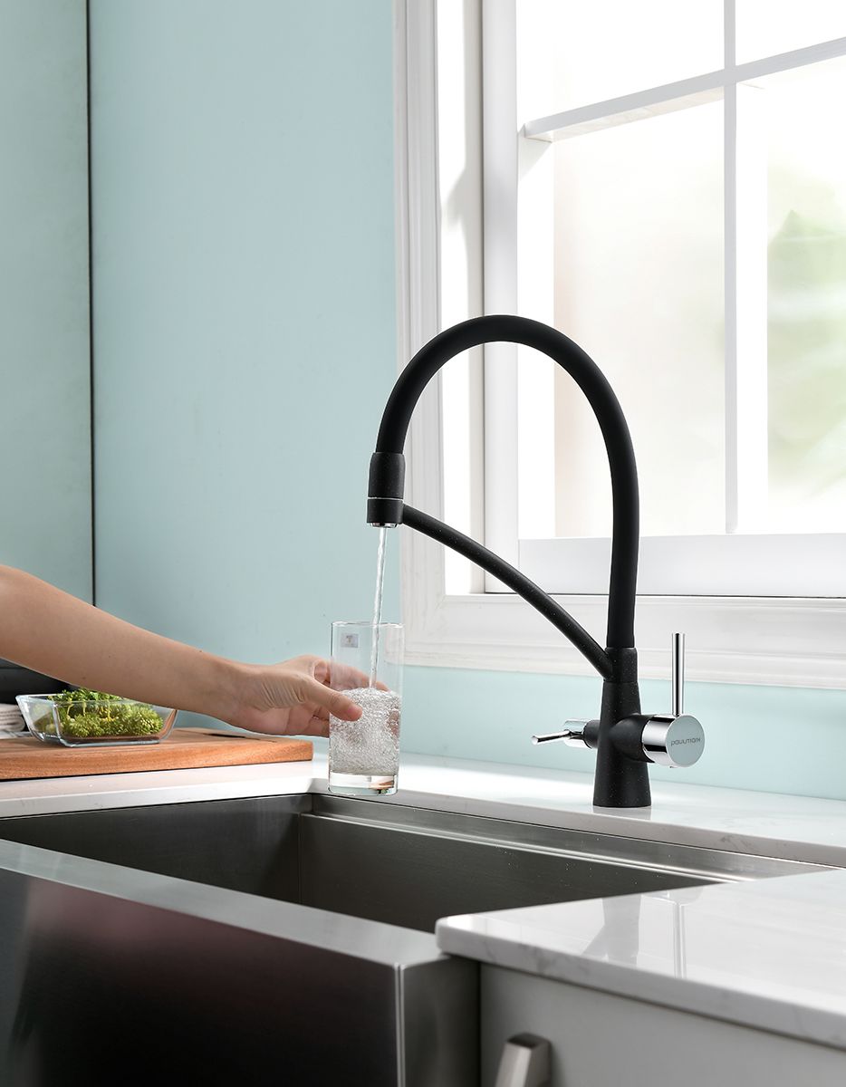 Смеситель под фильтр с гибким изливом, артикул Si213111-308Смеситель для кухни однорычажный, с возможностью подключения фильтра питьевой воды, эластичный излив, керамический картридж 35 мм.Материал корпуса - латунь высокого качества. Многослойное, стойкое к истиранию покрытие. Долговечный керамический картридж диаметром 35 мм. Эластичный излив. Съемный пластиковый аэратор, который обеспечивает мягкую струю, ровный и экономичный поток воды. Простой монтаж, стандартное подключение.