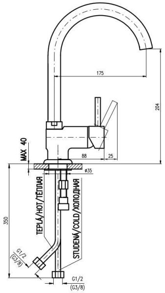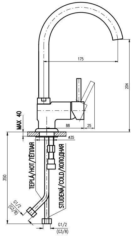 • Высота смесителя: