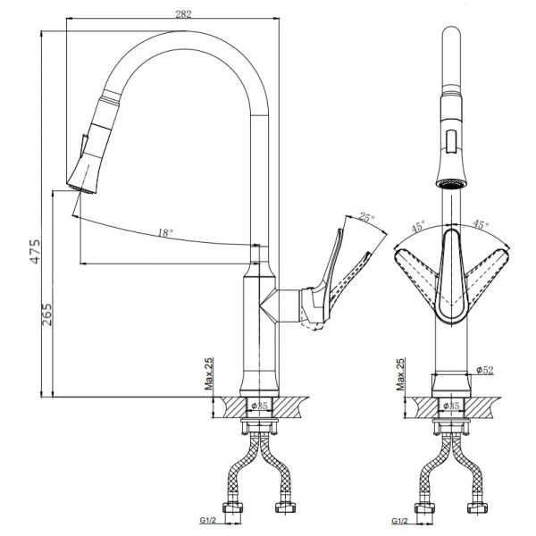 Смеситель для кухни RUSH арт. JA0735-24 с поворотным изливом и вытяжной лейкой из коллекции Jawa с металлической ручкой, изготовлен из высококачественной латуни и имеет рычажное управление.В смеситель установлен картридж D-35 с керамическими пластинами. Высота смесителя 486 мм. Излив поворотный 274 мм. Высота излива до аэратора 238 мм. Аэратор изготовлен из пластика с нержавеющим корпусом, угол наклона аэратора-18гр.В комплекте универсальная присоединительная группа для установки на горизонтальную поверхность, гибкая подводка с латунными гайками 40 см - 2шт, фум-лента, индивидуальный пакет, паспорт, гарантийный талон.